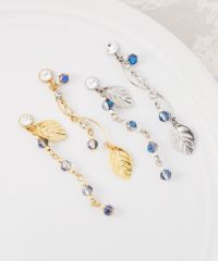 シンプルで上品なピアス。 葉っぱのチャームが絶妙なアシメの素敵なピアスです、