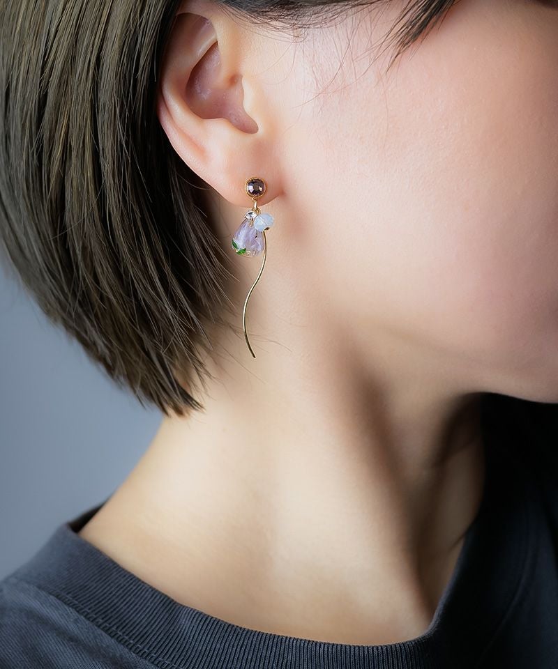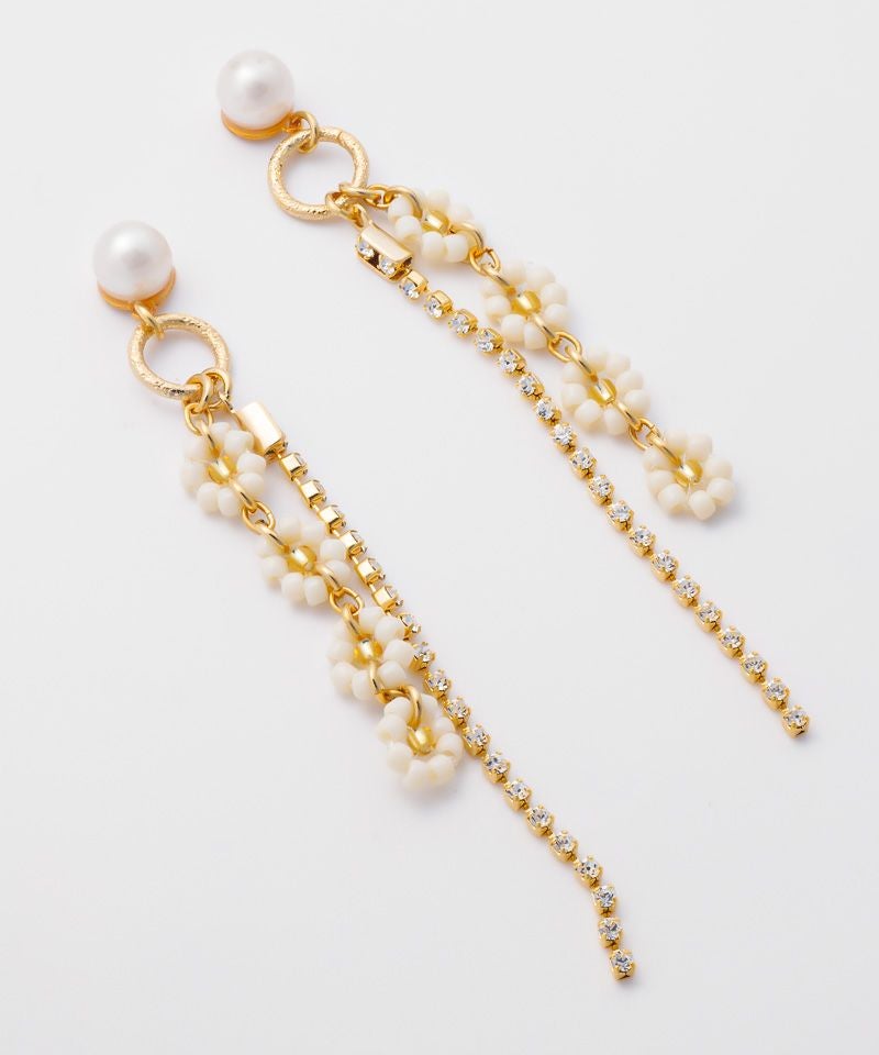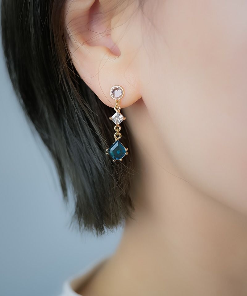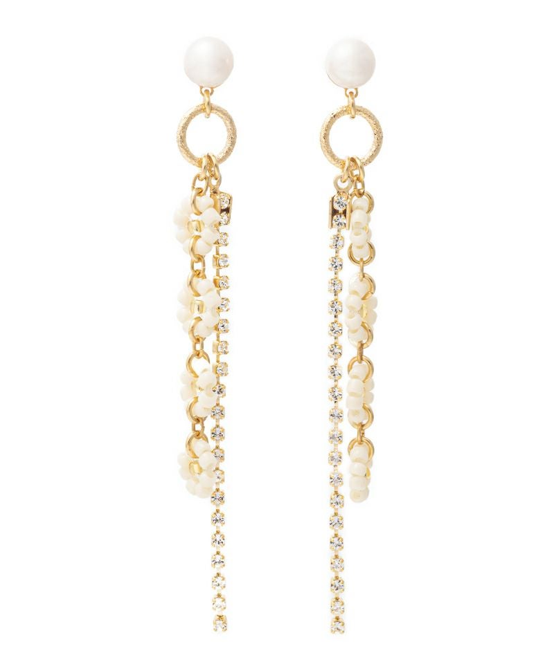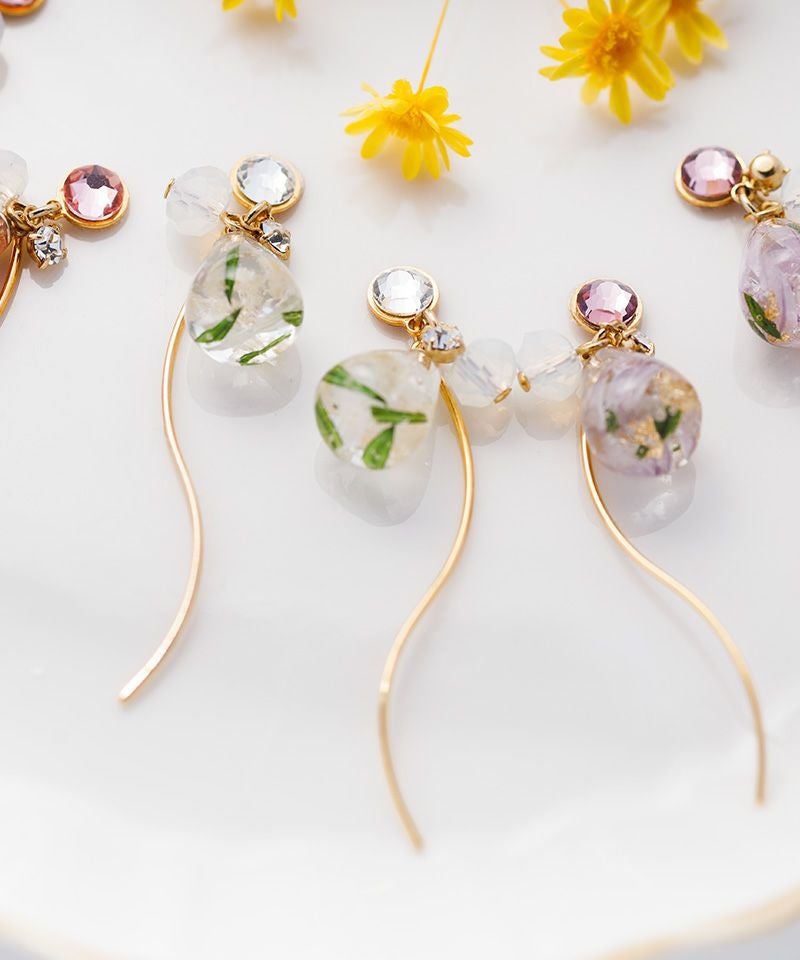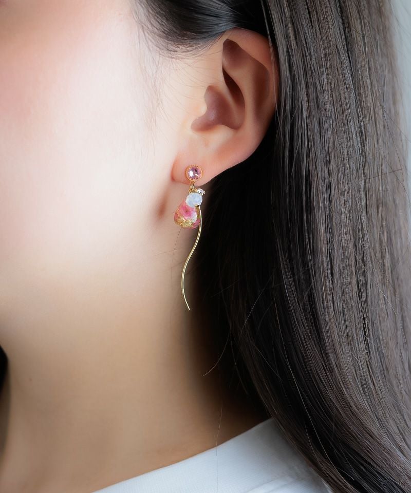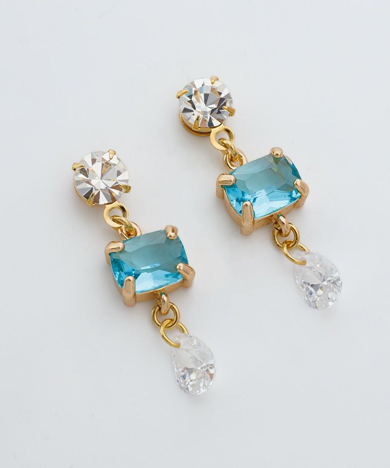 【ノンニッケル】連なる4粒ストーンとドロップクリスタル