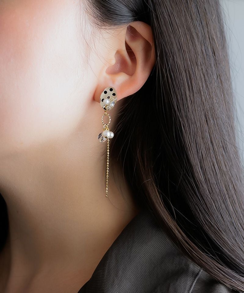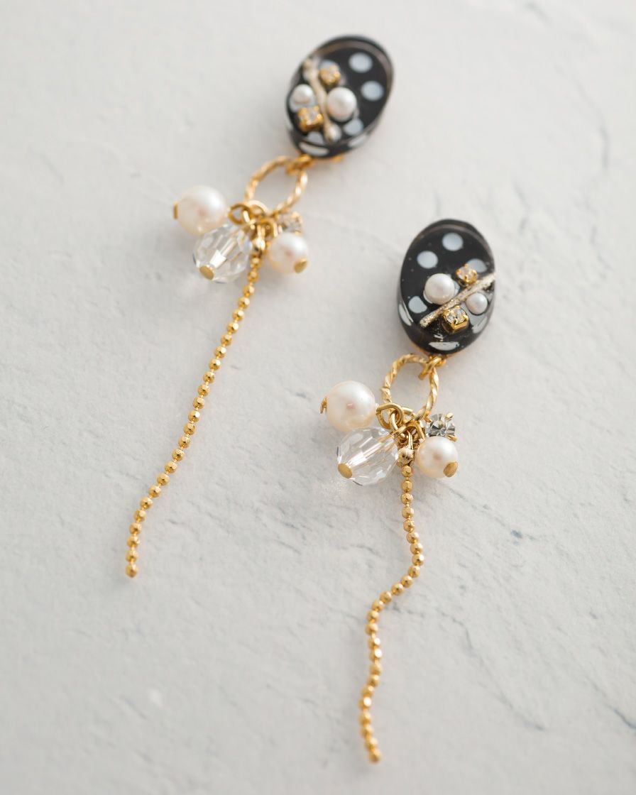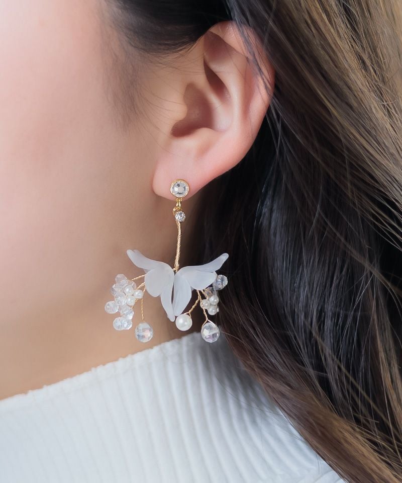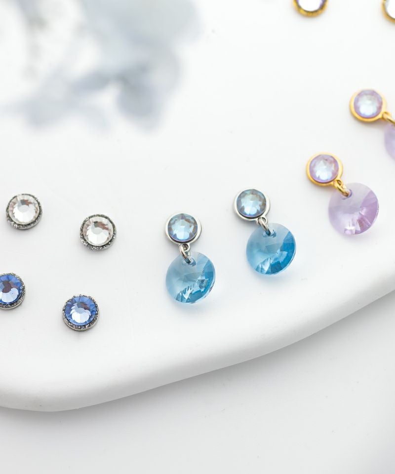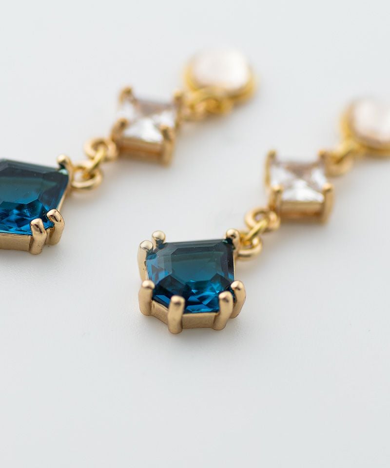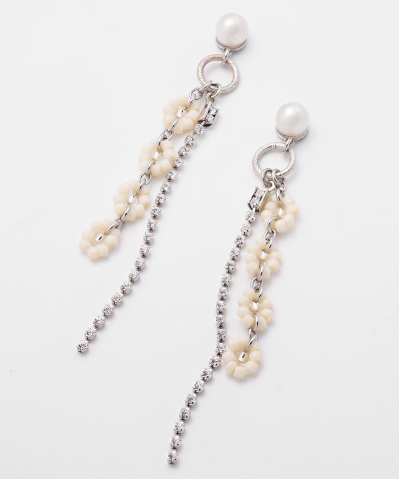 【ノンニッケル】連なる4粒ストーンとドロップクリスタル