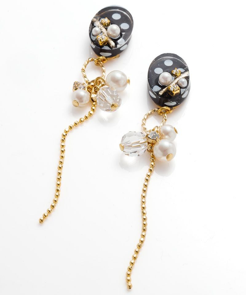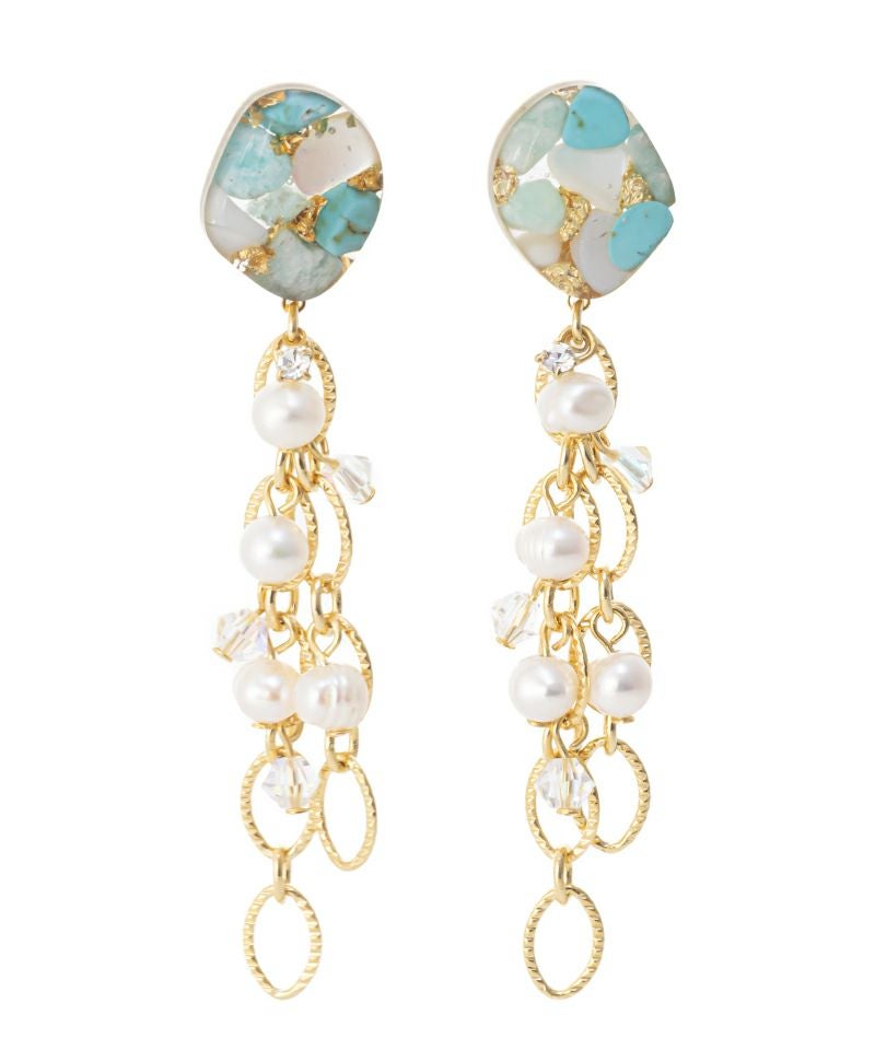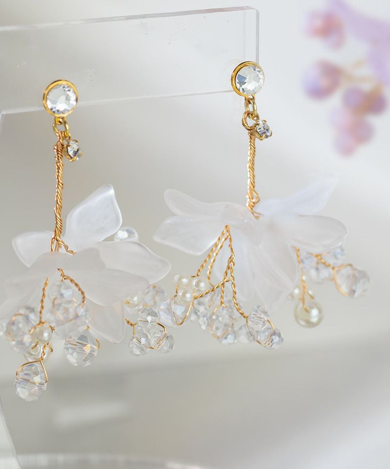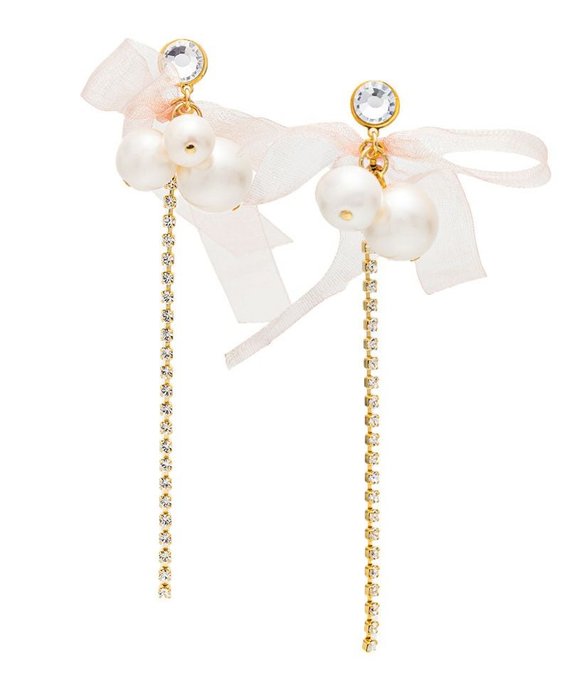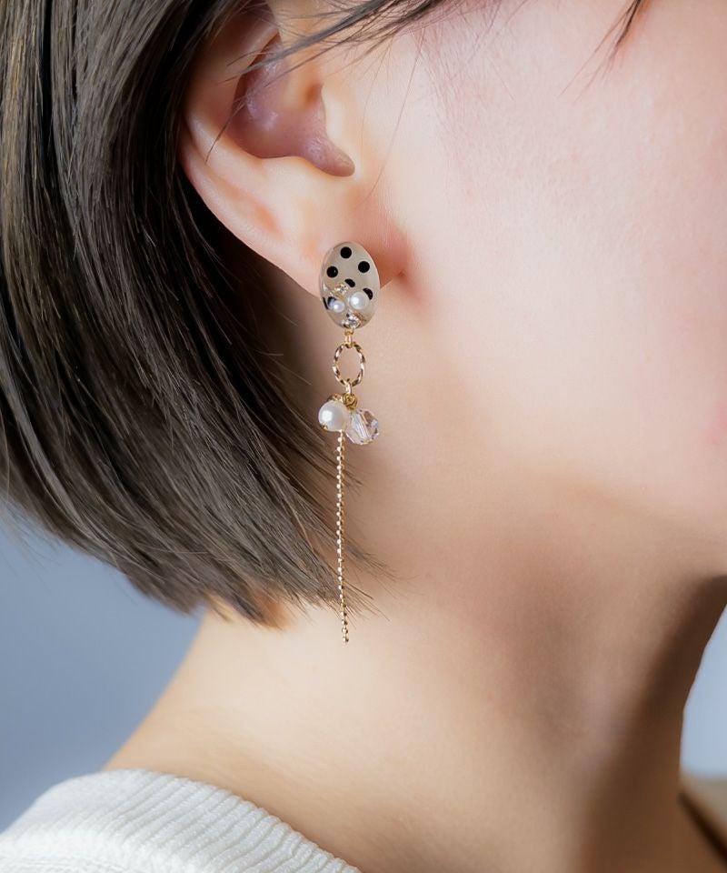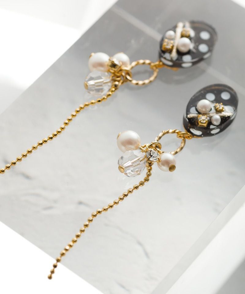 【ノンニッケル】連なる4粒ストーンとドロップクリスタル