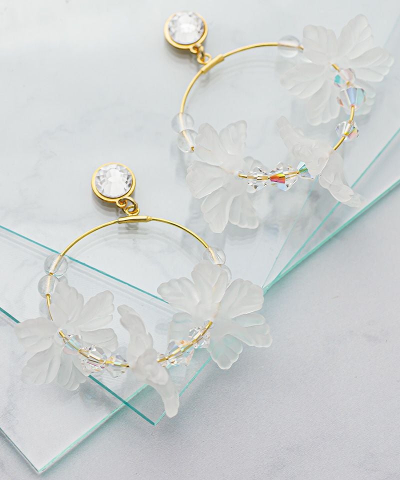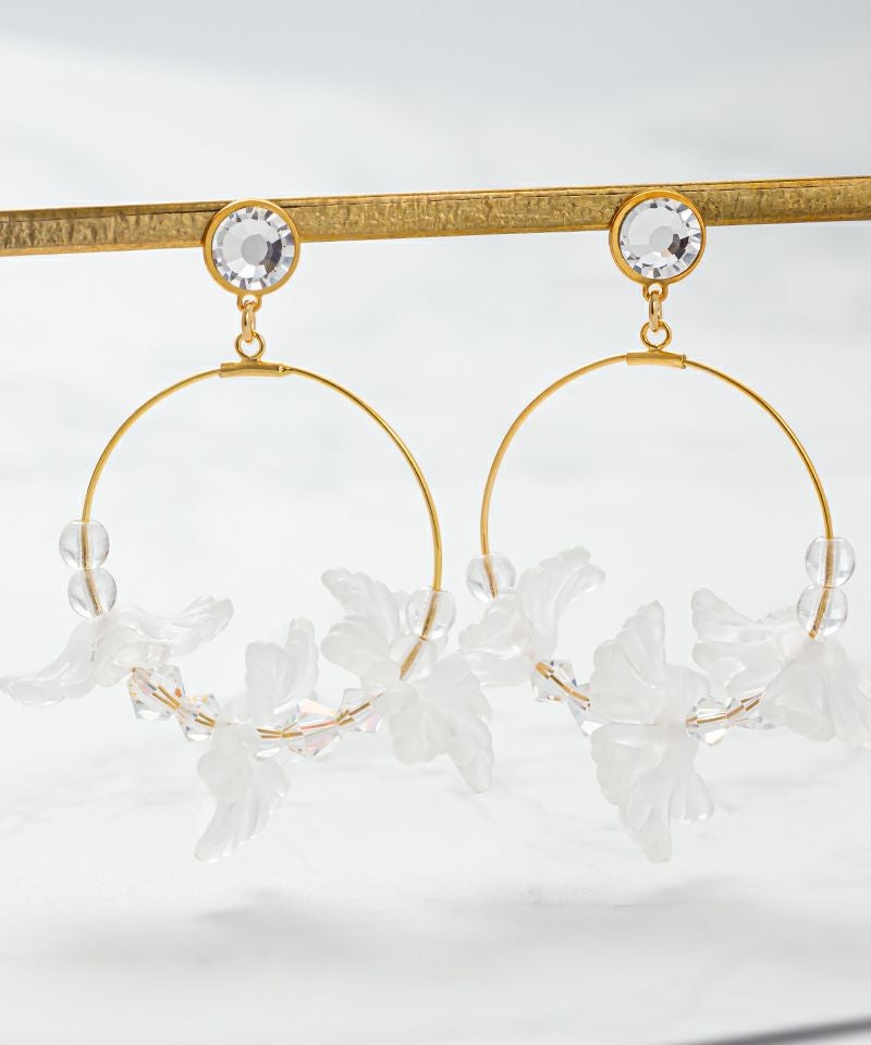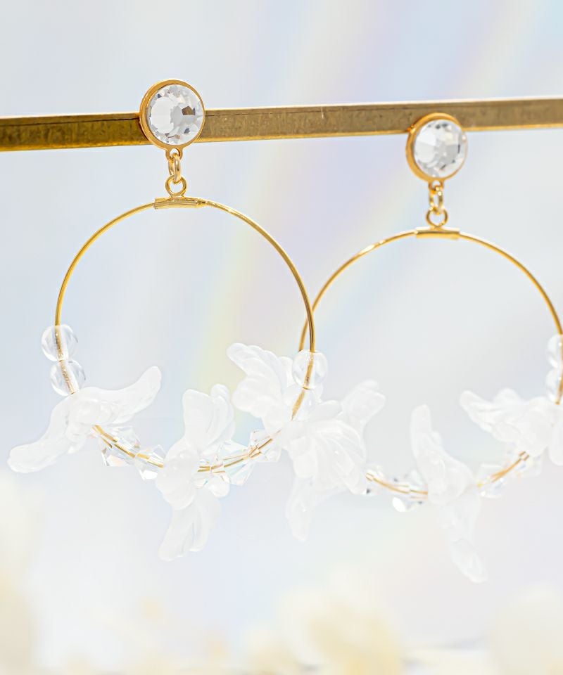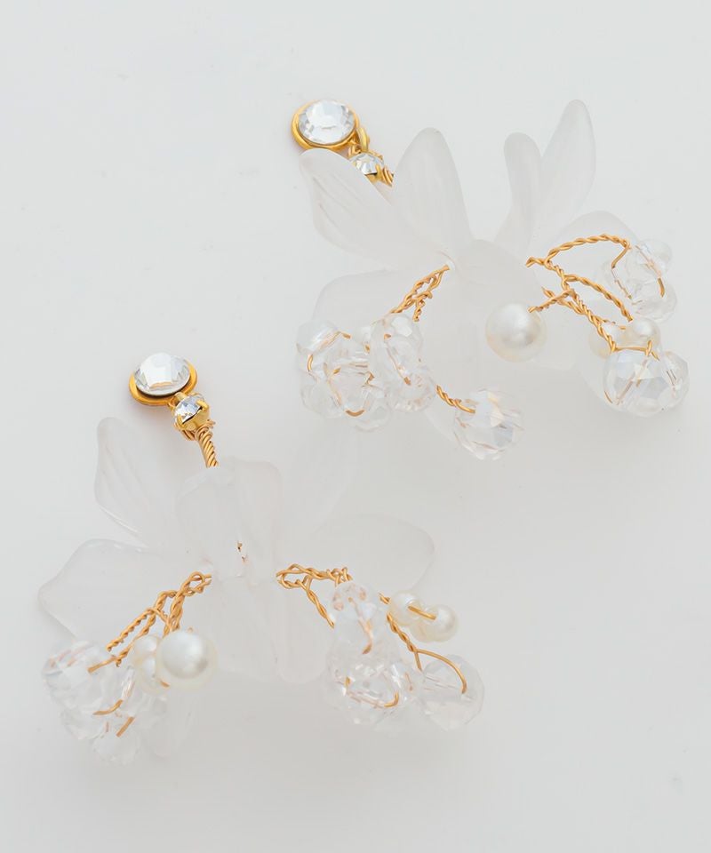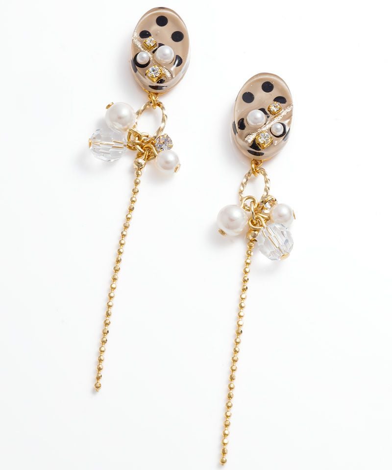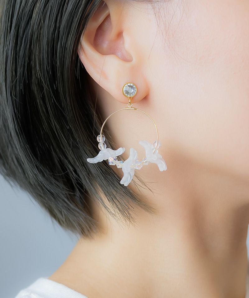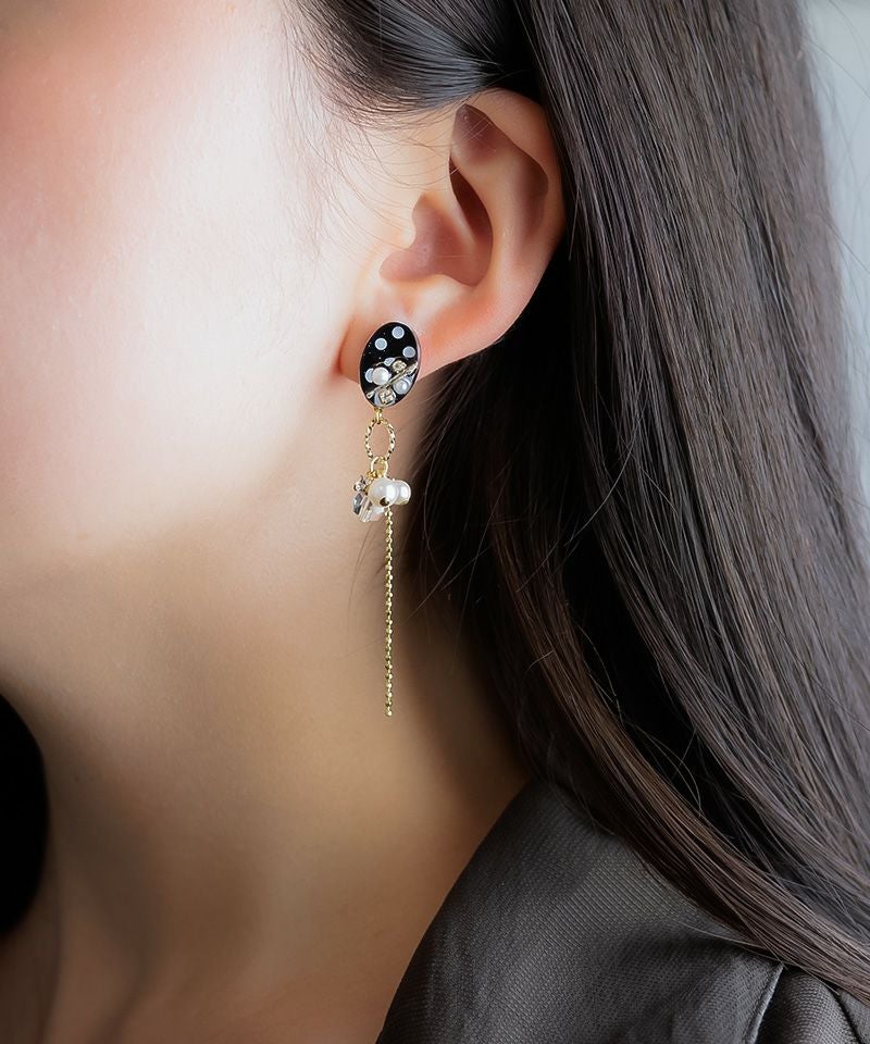 【ノンニッケル】連なる4粒ストーンとドロップクリスタル
