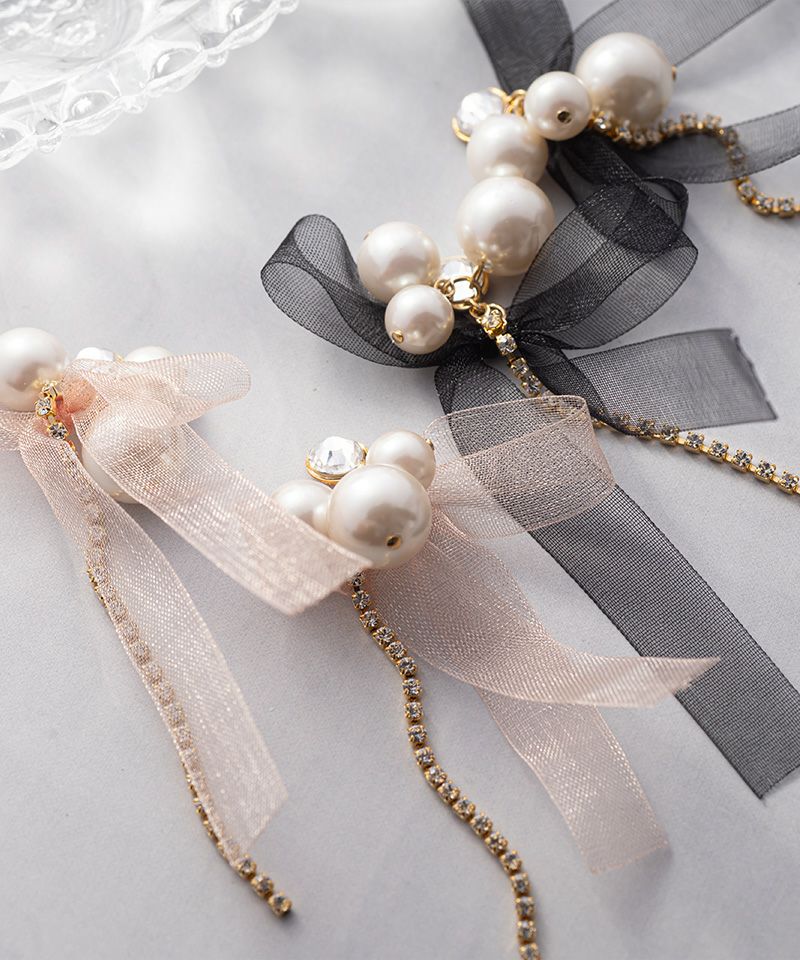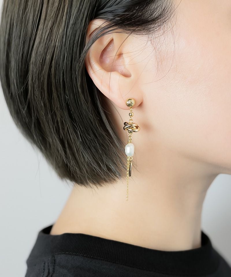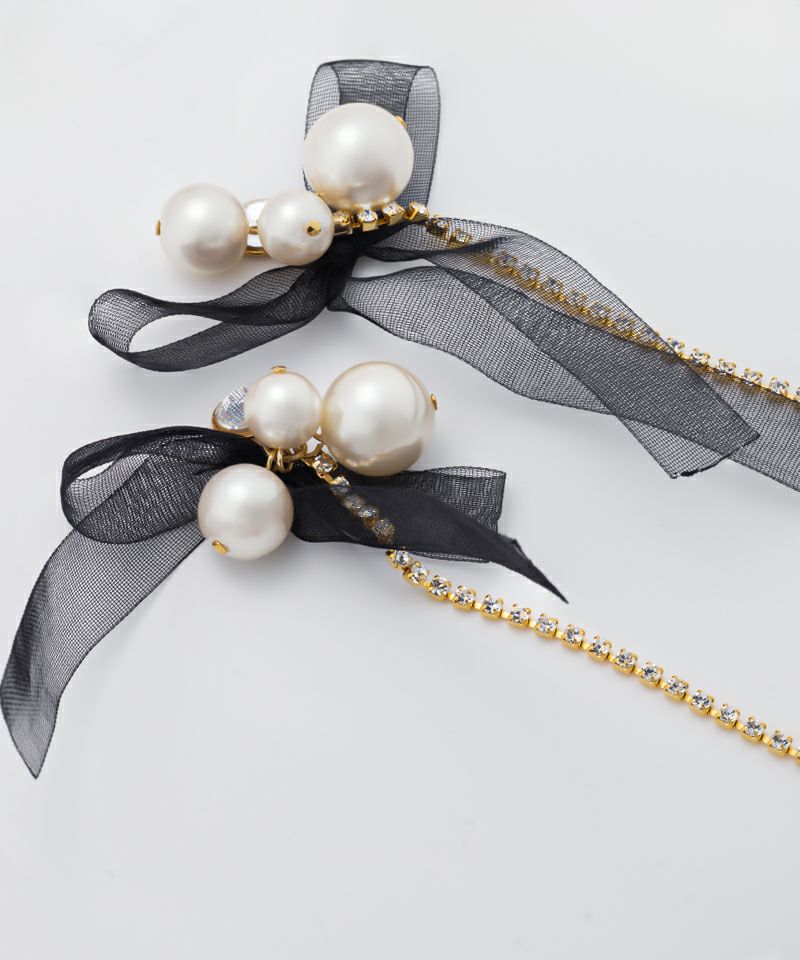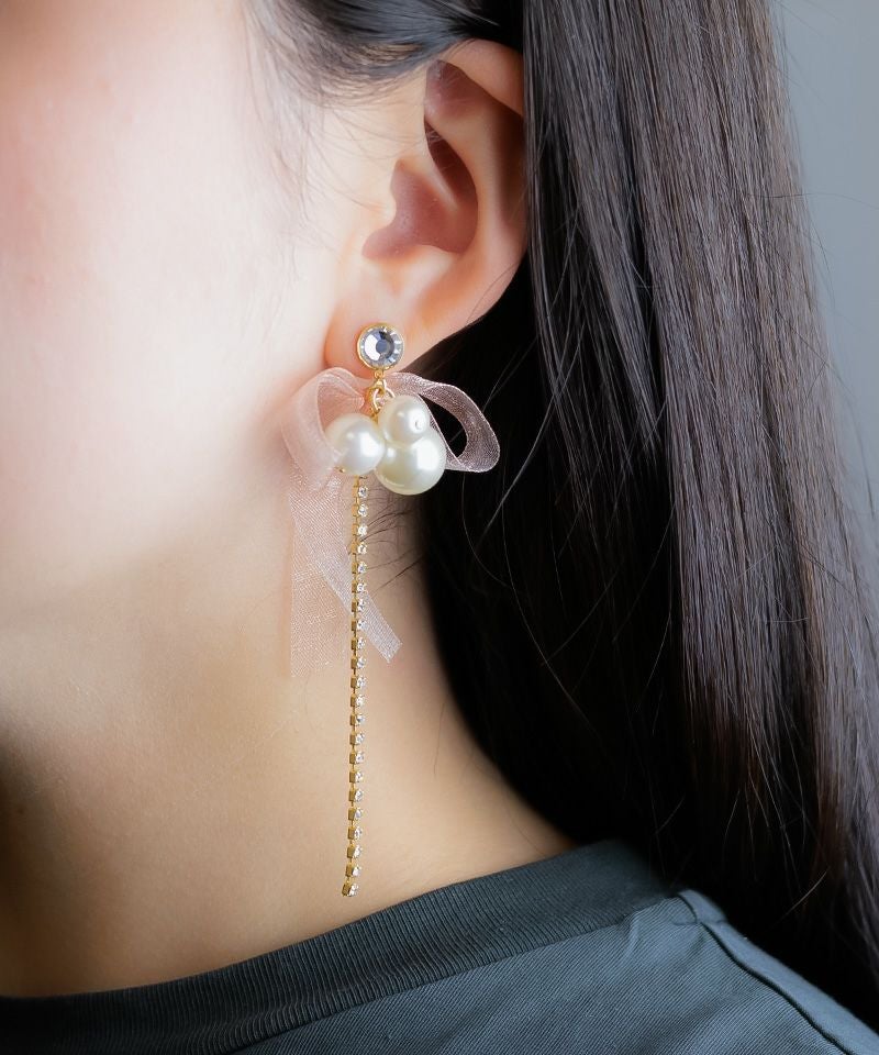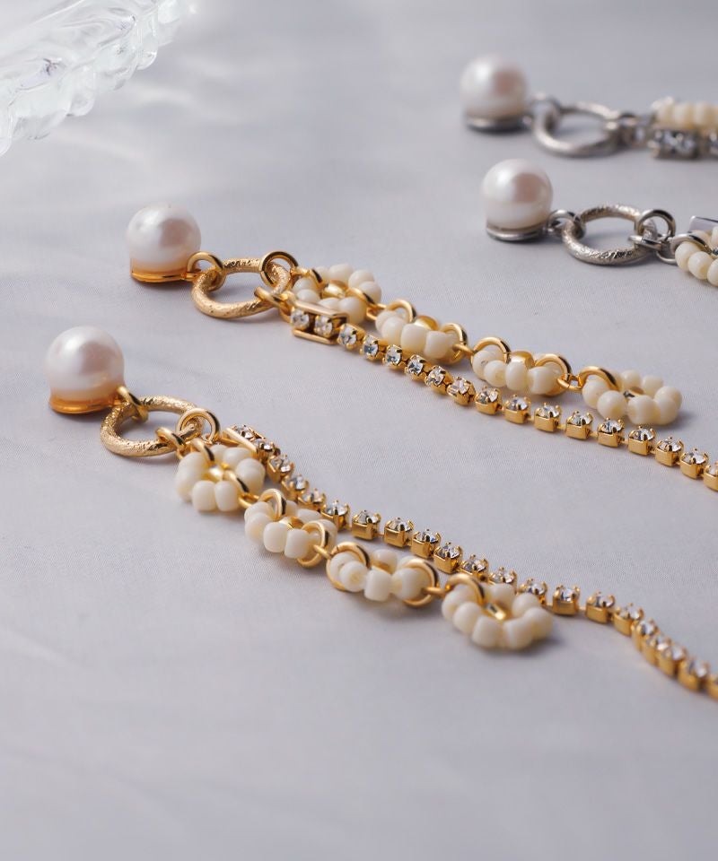 【ノンニッケル】連なる4粒ストーンとダブルパール